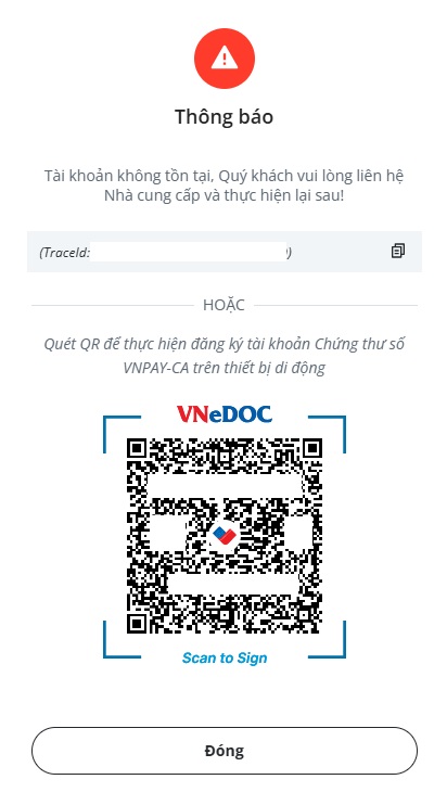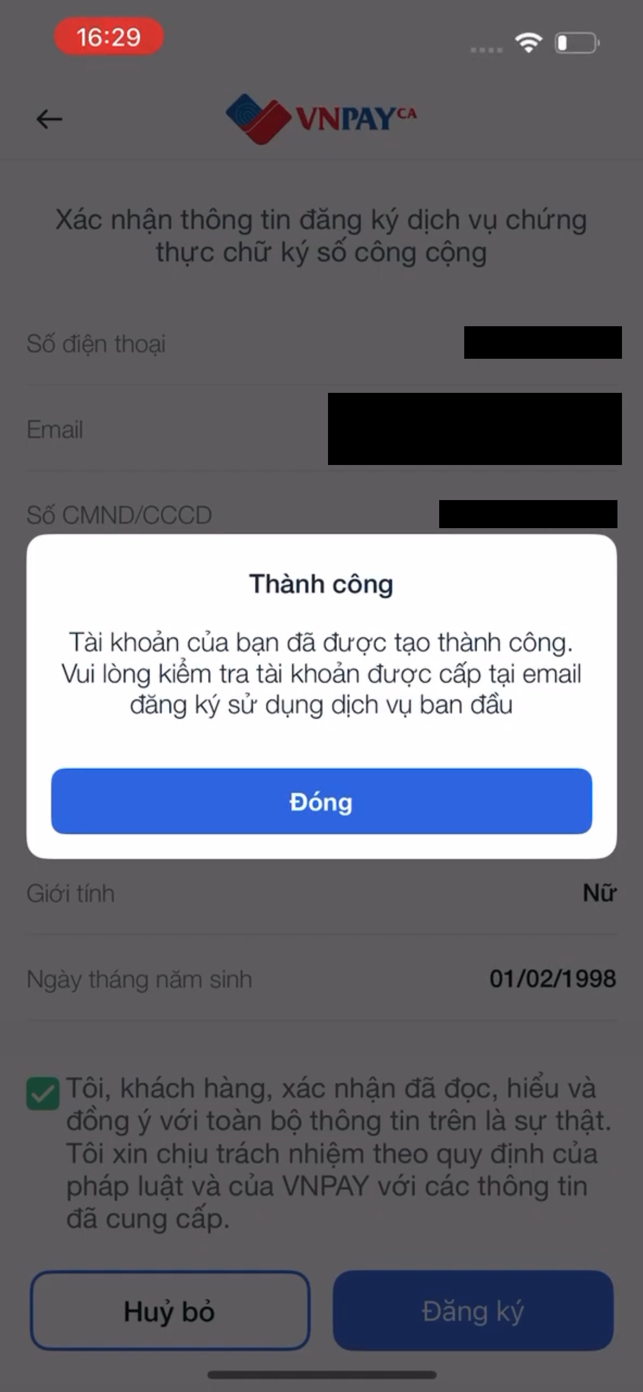 Bước 2B: Nhập/Chọn thông tin chứng thư số, nhấn “Đăng ký” tại popup Thông báo