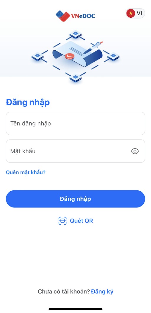Truy cập app VNeDOC, chọn tài liệu đến với vai trò ký và nhà cung cấp VNPAY