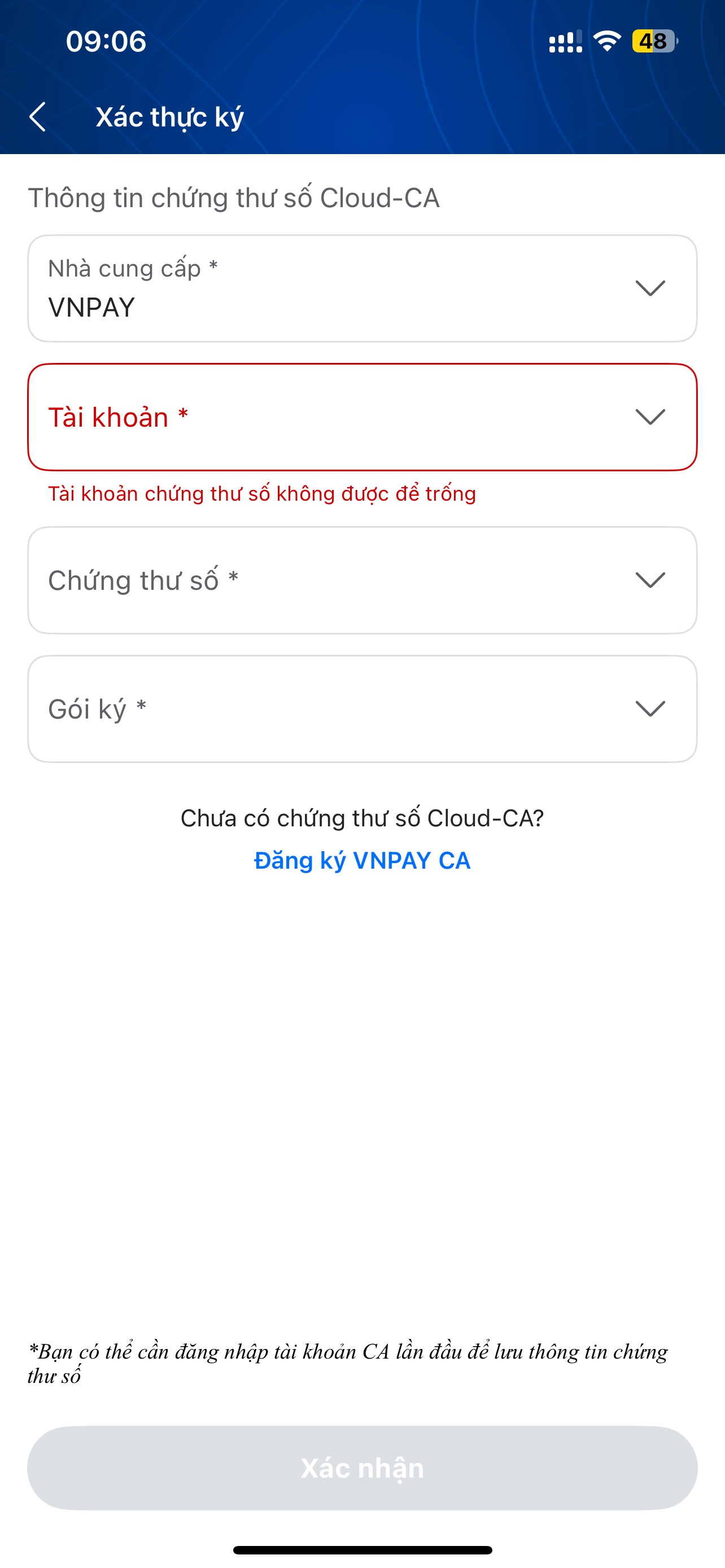 Bước 1B: Tại màn “Xác thực ký” chọn NCC VNPAY.