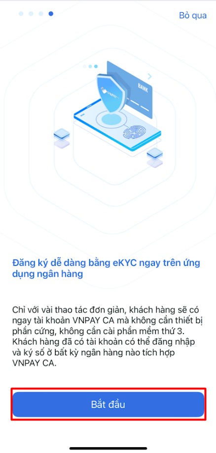 Bước 3: Đọc thông tin giới thiệu VNPAY CA, nhấn “Bắt đầu” để đi luồng đăng ký