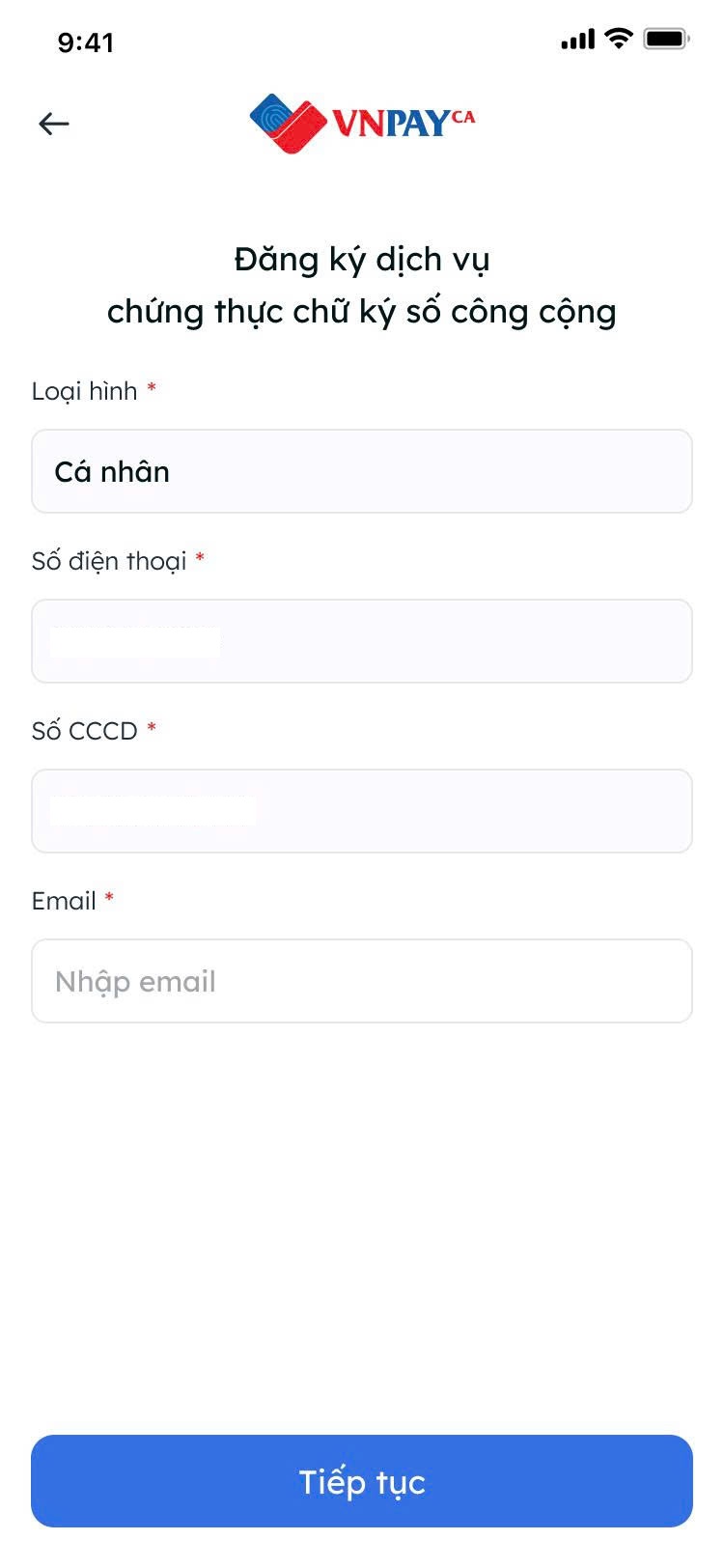Bước 5: Điền các thông tin theo yêu cầu và chọn “Tiếp tục”