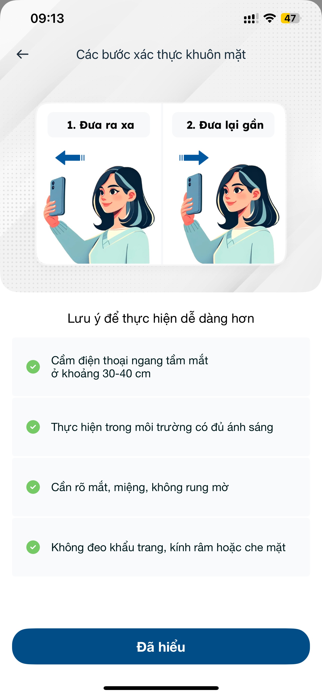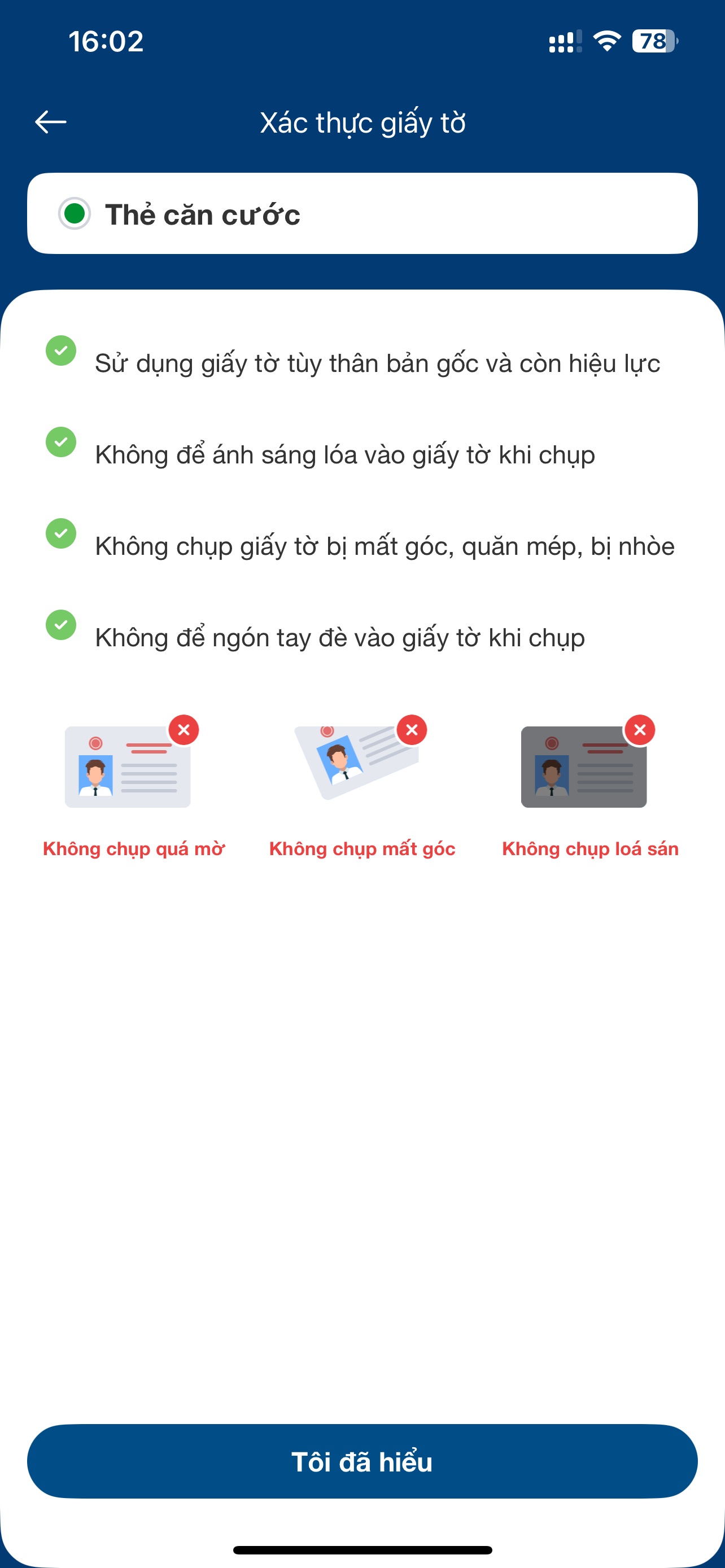 - Thực hiện chụp giấy tờ tùy thân và xác thực khuôn mặt theo hướng dẫn