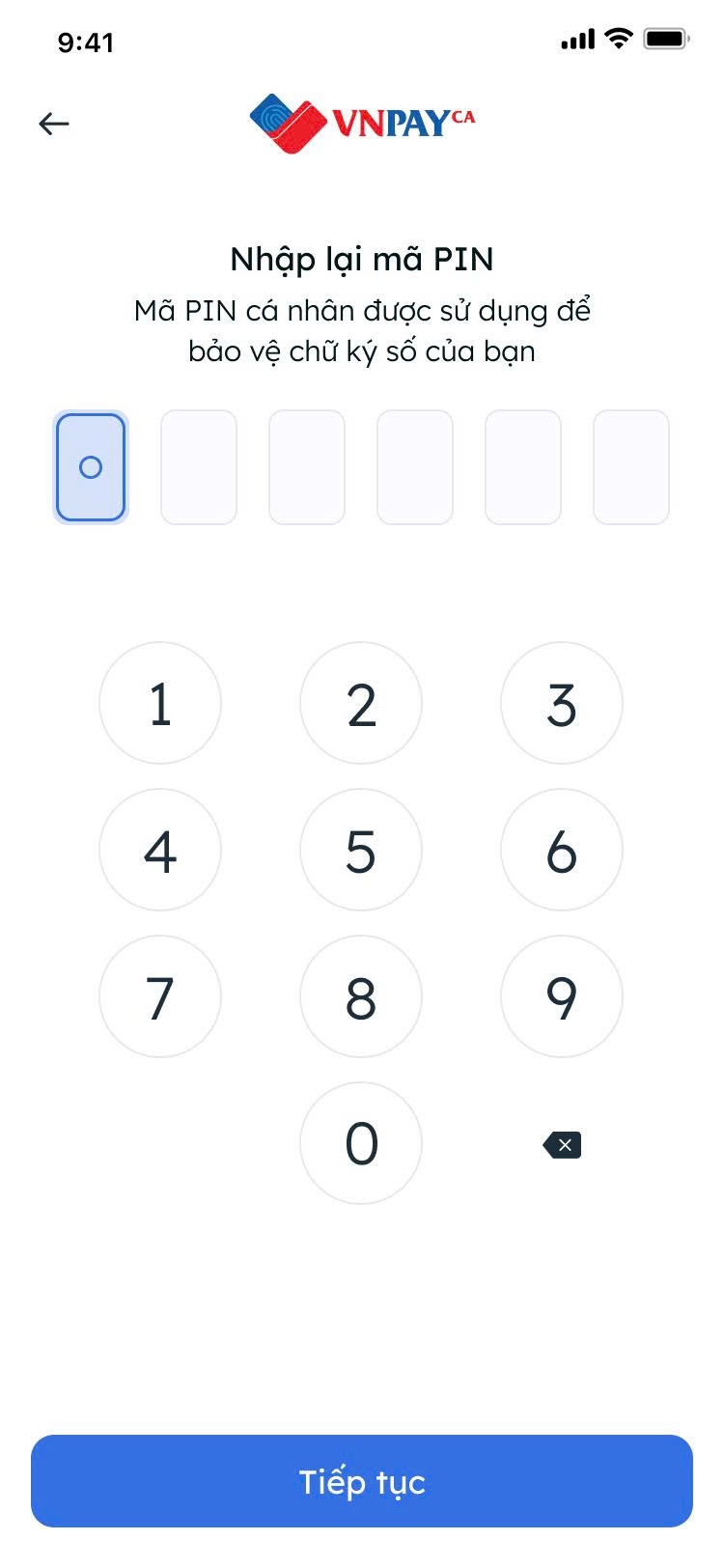 - Nhập lại mã PIN cá nhân để thiết lập mã PIN